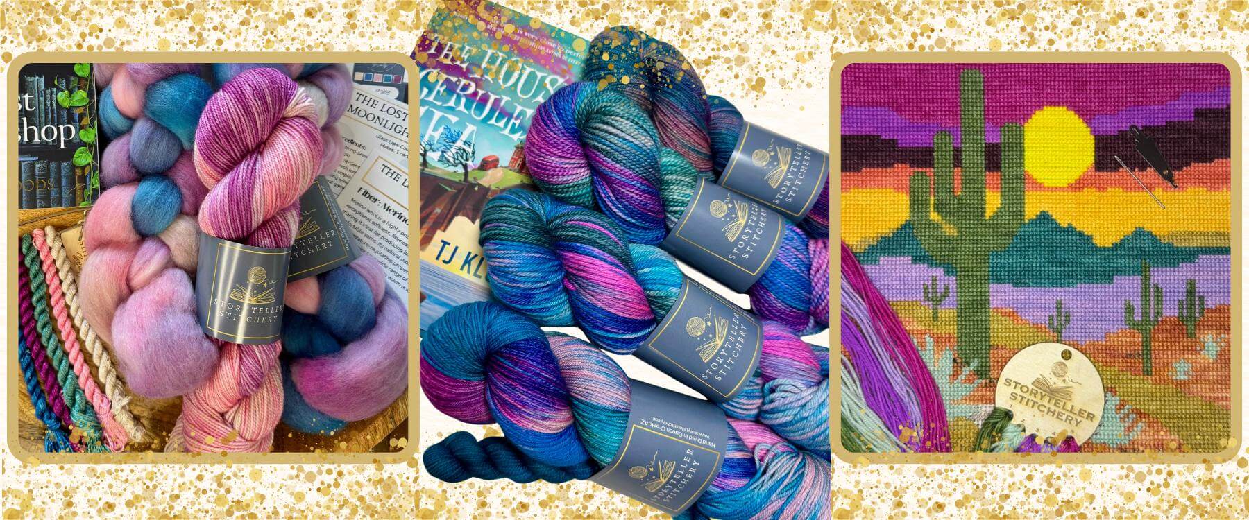 The Storyteller Stitchery Society delivers monthly hand-dyed yarn, fiber, or silk threads — all inspired by a featured book.