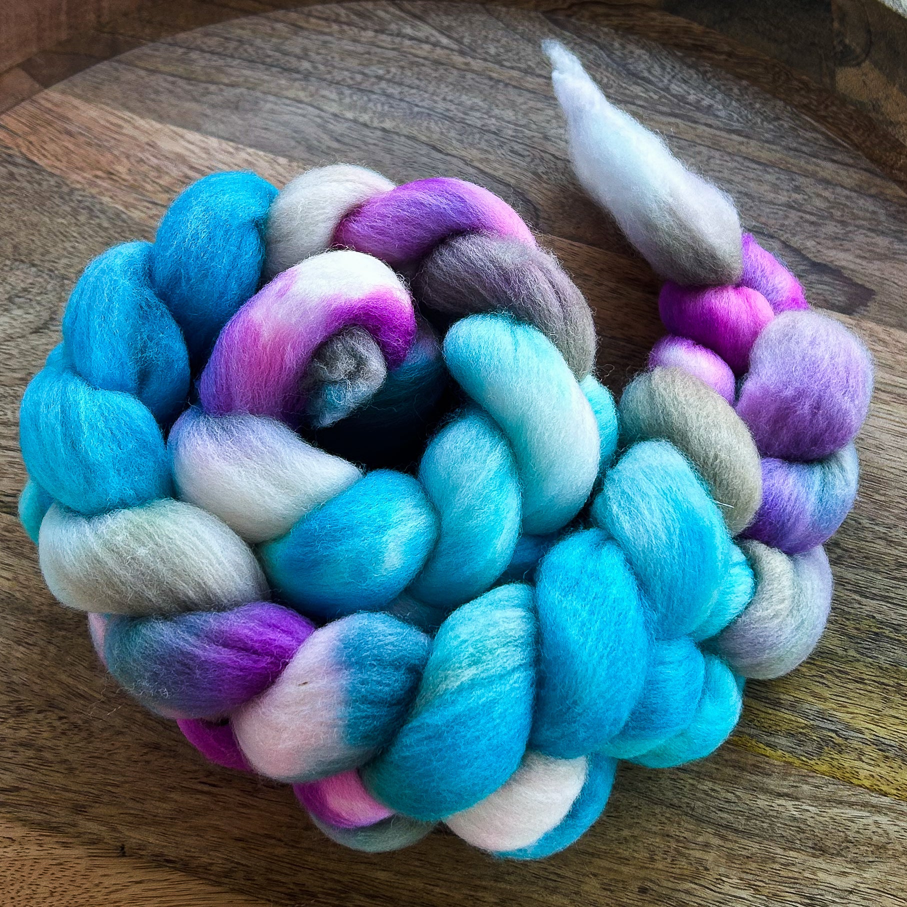 Longer staple length compared to merino. Good for beginner spinners. Higher micron count means it is not next-to-skin soft, but it is great for socks and stronger wearing garments.