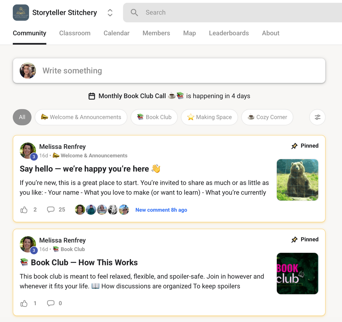 Society members receive free access to our private community space, where we gather for book discussions, shared creative time, and monthly live calls.